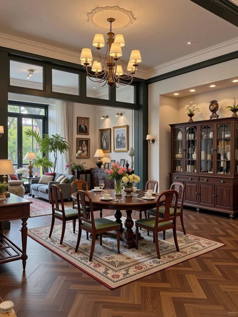 5.  Színek egysége, amikor antik és modern lakberendezést ötvözünk
