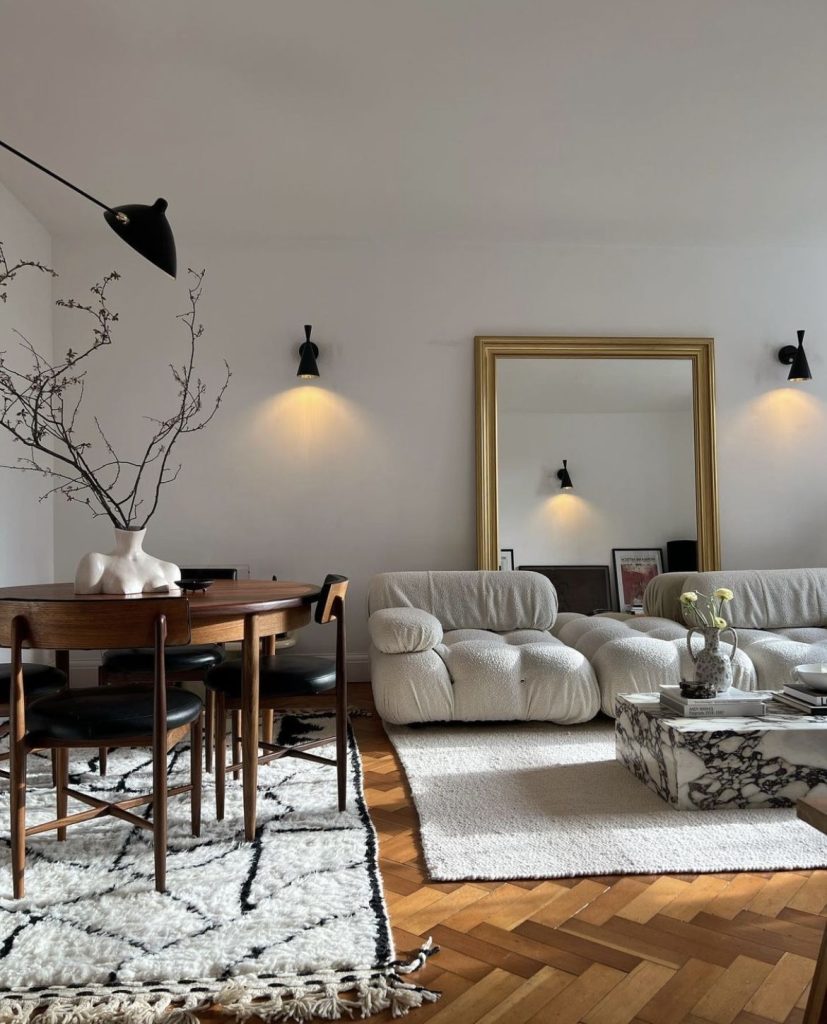 • gyapjúszőnyeg régi és új bútorok közé szervezve