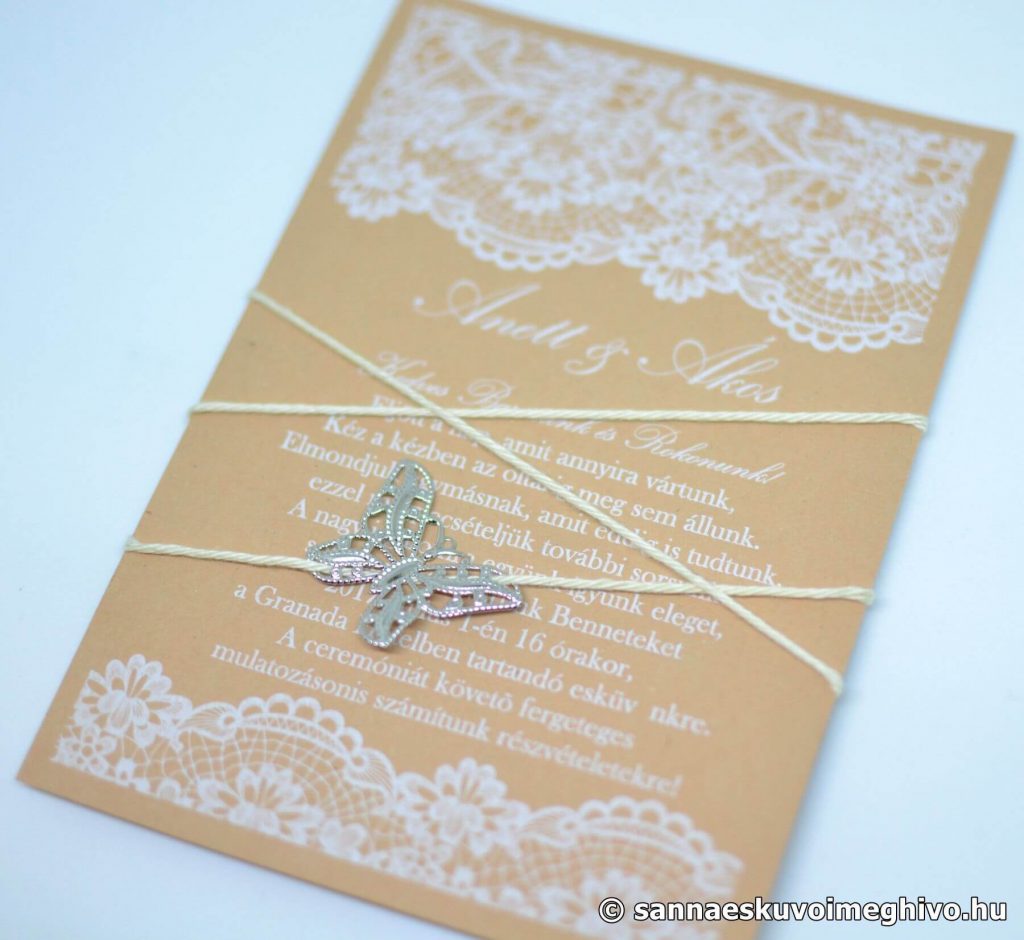A fehér színű csipke nyomtatása elsősorban még mindig a nagyobb nyomdák kiváltsága. Ott azonban nem sok lehetőséged van – vagy csak jó drágán – az álmaid megvalósítására. De kis kutatással találni fogsz olyan meghívó készítőt, aki tud Neked fehér csipkét és szöveget nyomtatni 🙂
